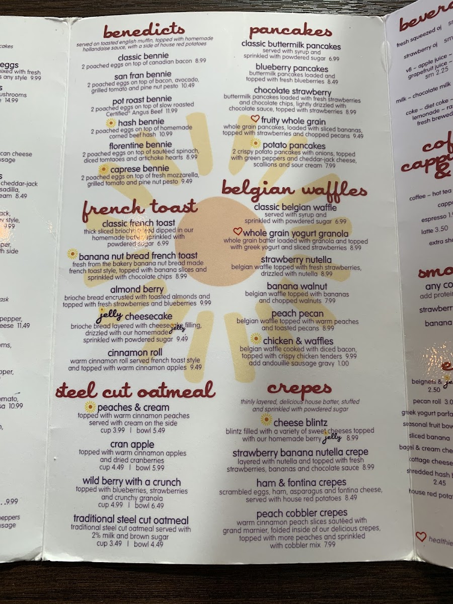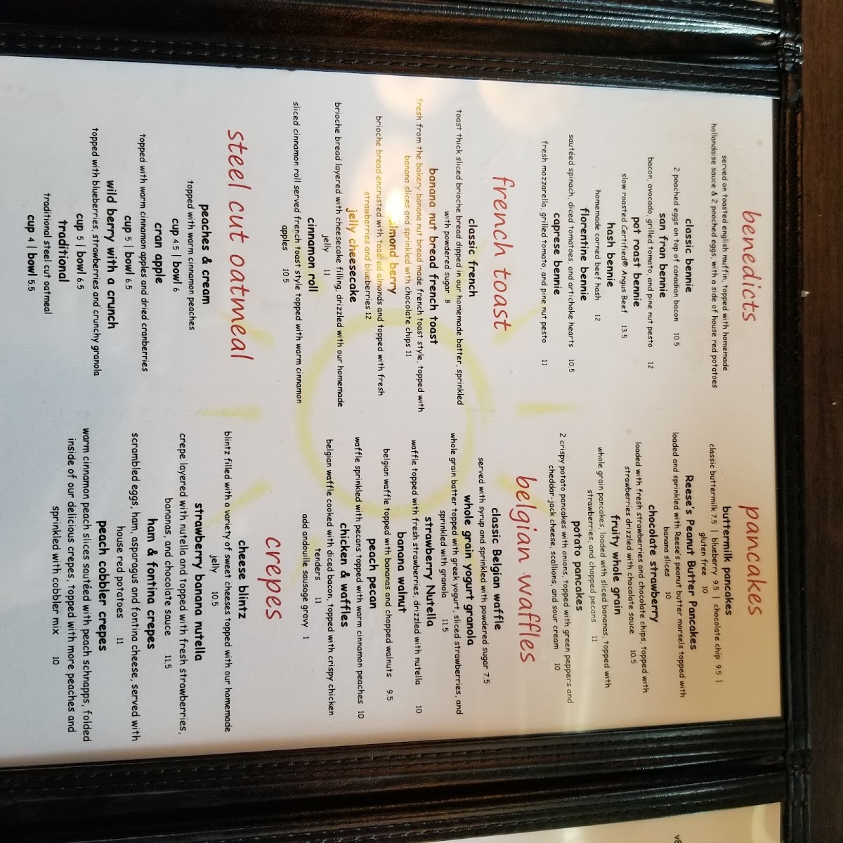 premium Boar's Head ham, swiss cheese, sauteed spinach and dijon honey mustard, between 2 french toast slices, topped with melted parmesan and an over easy egg. comes with your choice of side.