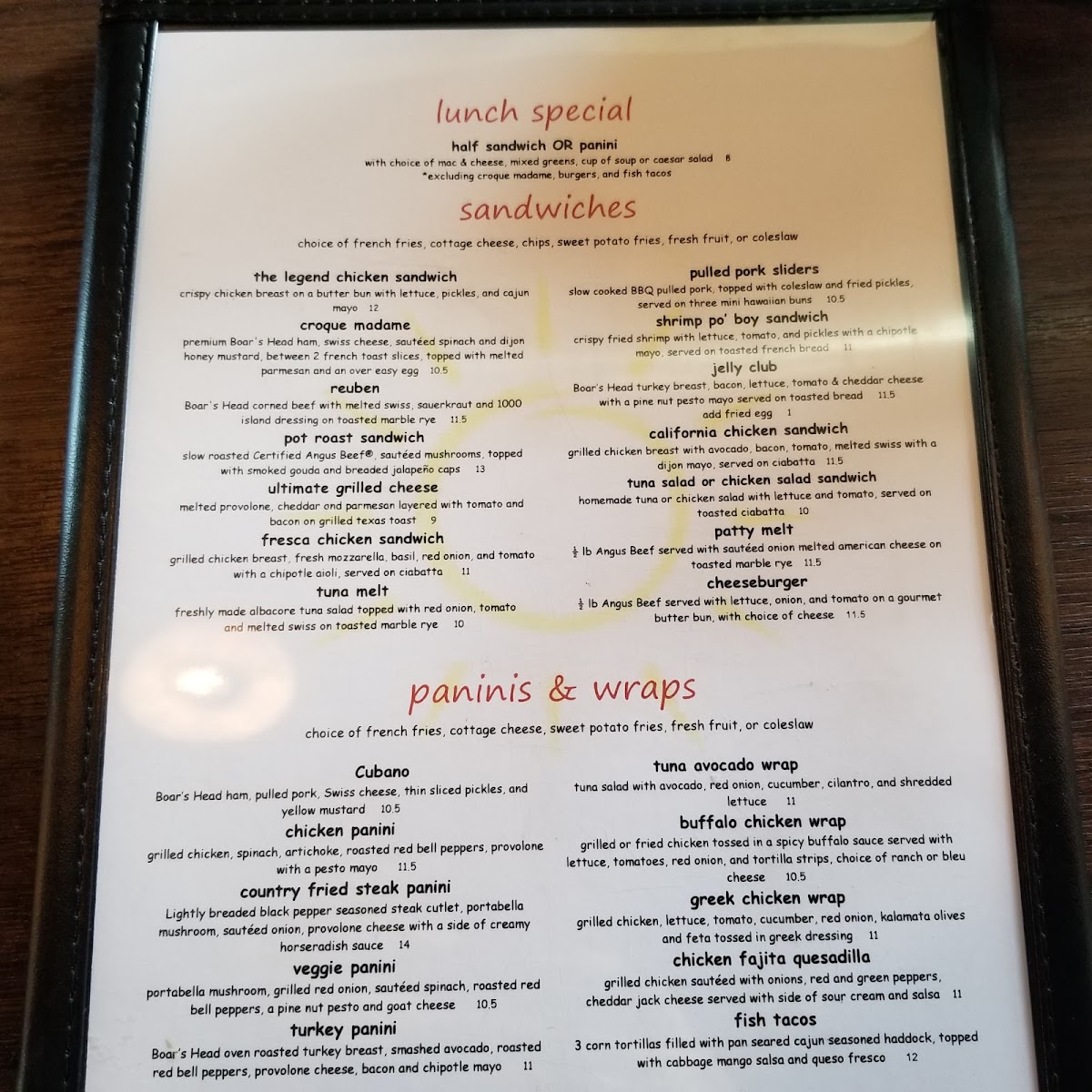 homemade chicken salad with lettuce and tomato, served on toasted ciabatta. comes with your choice of side.