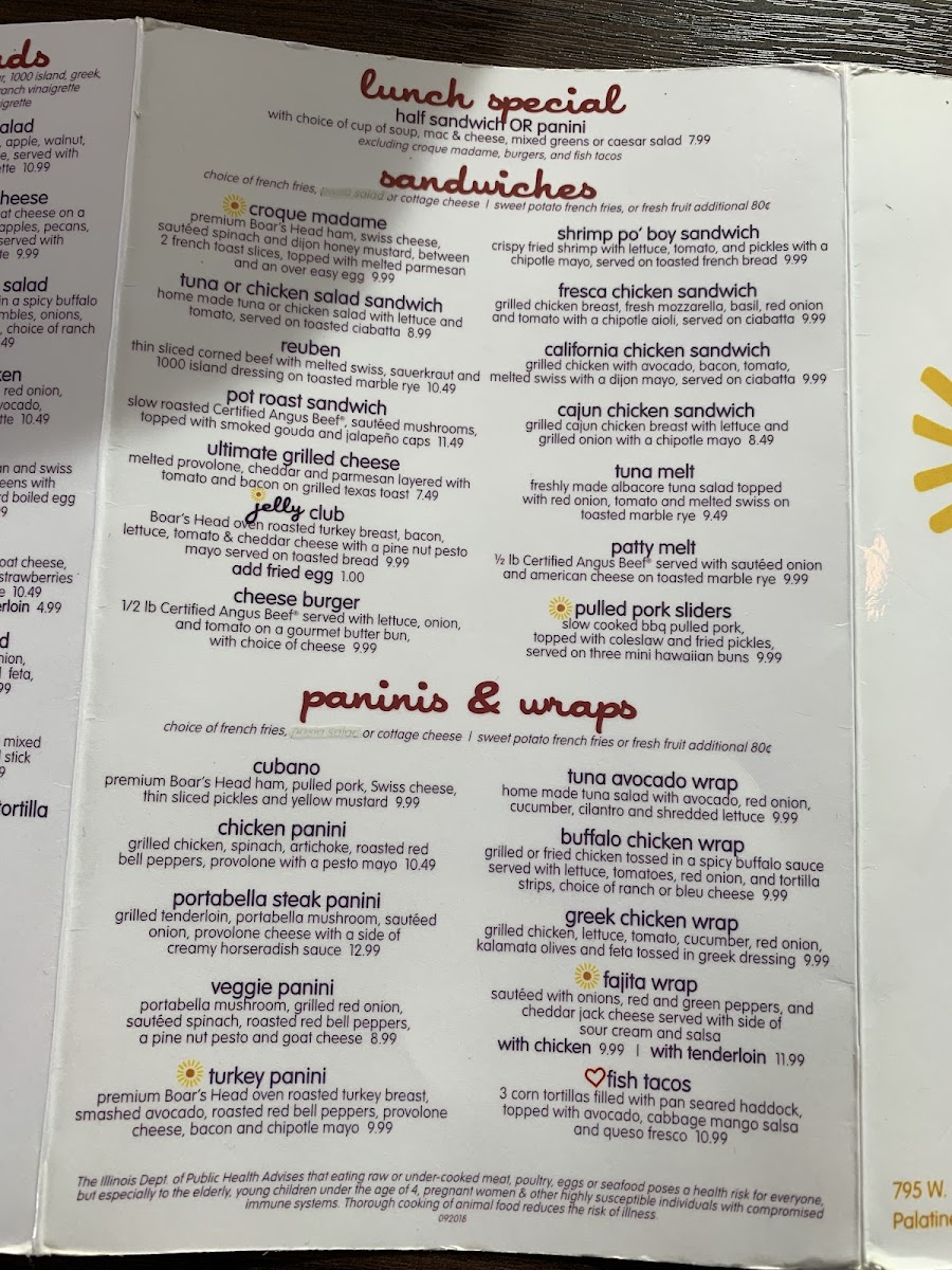 grilled chicken, spinach, artichoke, roasted red bell peppers, provolone with a pesto mayo. comes with your choice of side.